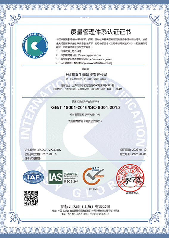 上海酶聯(lián)生物科技有限公司經(jīng)過(guò)數(shù)年的努力發(fā)展已迅速成為集產(chǎn)品研發(fā)、生產(chǎn)、經(jīng)營(yíng)為一體的專(zhuān)業(yè)化生物工程公司。公司具有完善的實(shí)驗(yàn)技術(shù)開(kāi)發(fā)平臺(tái),成熟的抗原、抗體研發(fā)系統(tǒng),熟練掌握各種酶聯(lián)技術(shù),結(jié)合公司的研發(fā)團(tuán)隊(duì),可以有效的保證公司產(chǎn)品強(qiáng)的穩(wěn)定性和高的準(zhǔn)確性,同時(shí)又具有競(jìng)爭(zhēng)力的價(jià)格。